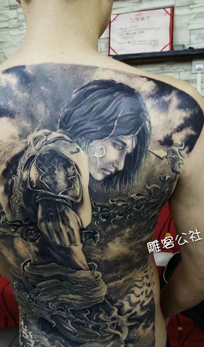 黑灰满背纹身图案