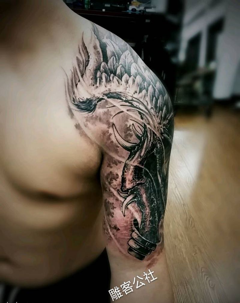 • 纹身吧推荐的披肩图腾半胛纹身图案作品展示