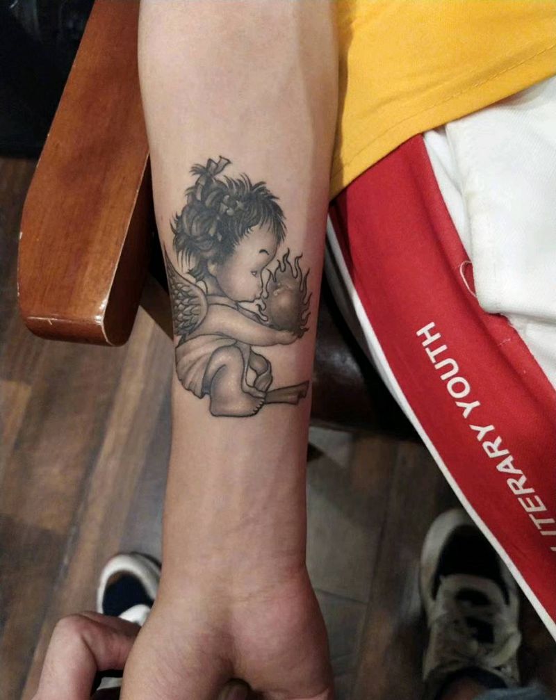 当前位置: 首页 >江苏省无锡市纹身店-睿刺青纹身图案>近期作品,爱神丘比特完成纹身图片_手臂New School纹身图案