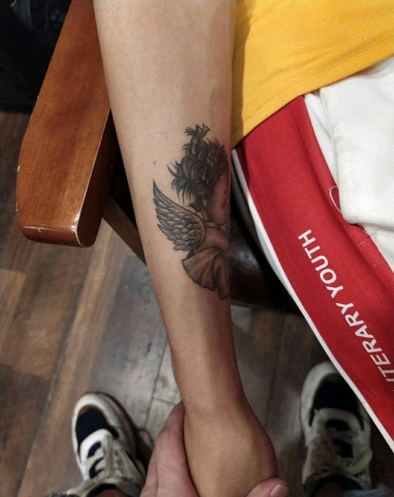 当前位置: 首页 >江苏省无锡市纹身店-睿刺青纹身图案>近期作品,爱神丘比特完成纹身图片_手臂New School纹身图案