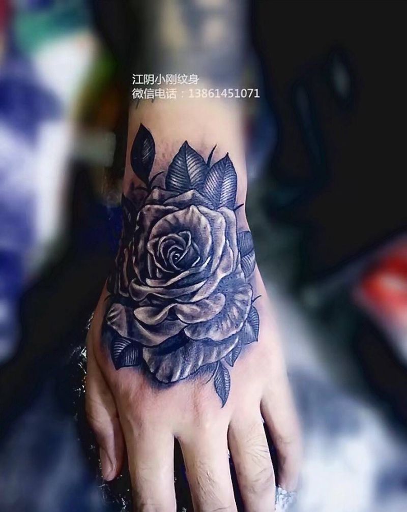 • 手背潮流时尚的玫瑰花眼睛纹身图案
