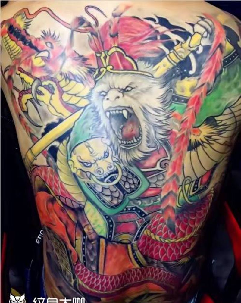 黑灰满背纹身图案