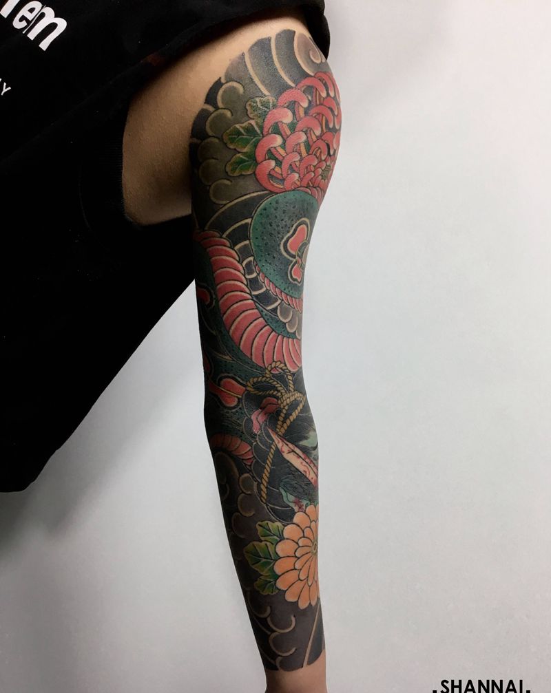 当前位置: 首页 >江苏省徐州市纹身店-山奈刺青纹身图案>蛇菊花生首纹身图片_手臂老传统纹身图案