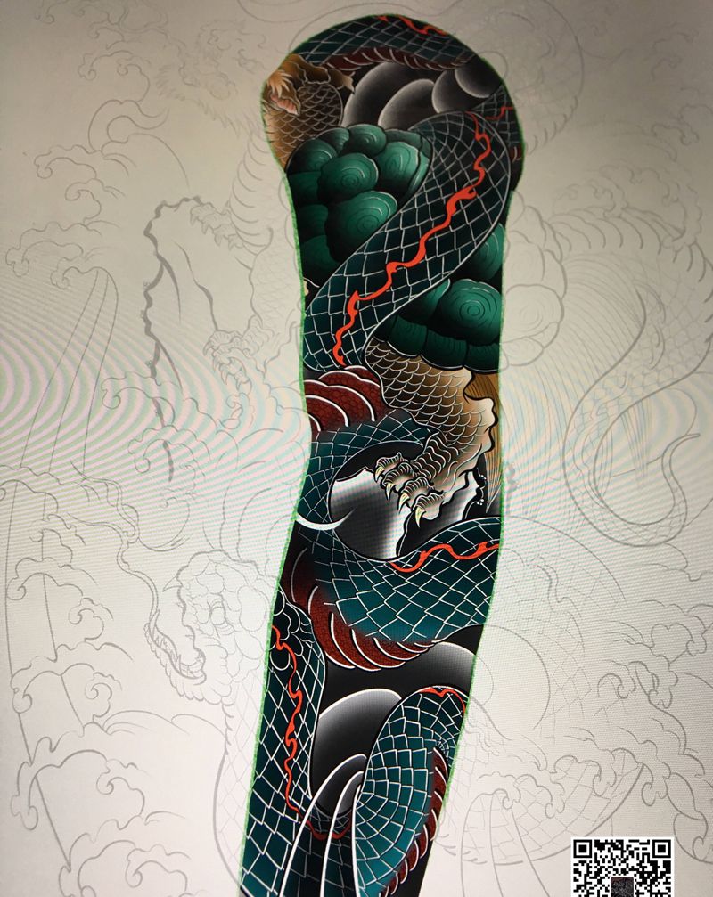 • T网红王老大花腿龙纹身图片_腿部新传统纹身图案