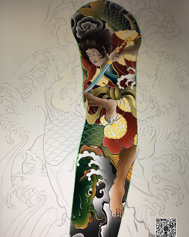 鬼若丸斩鲤纹身图片_新传统纹身图案
