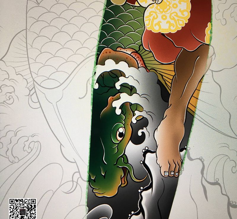 鬼若丸斩鲤纹身图片_新传统纹身图案