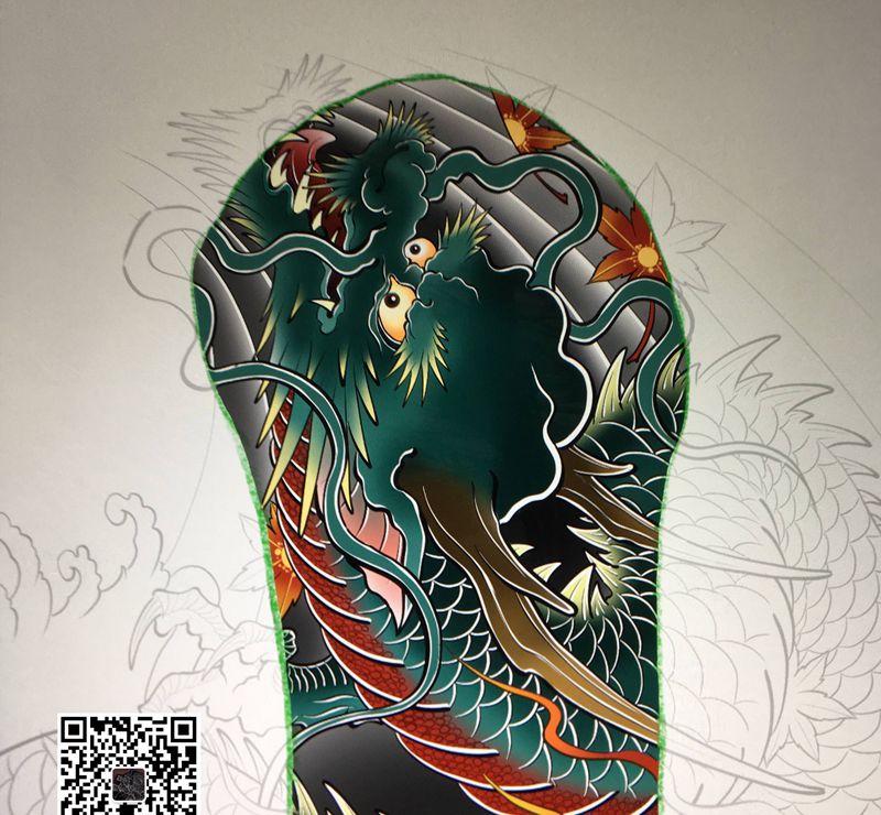 • T网红王老大花腿龙纹身图片_腿部新传统纹身图案