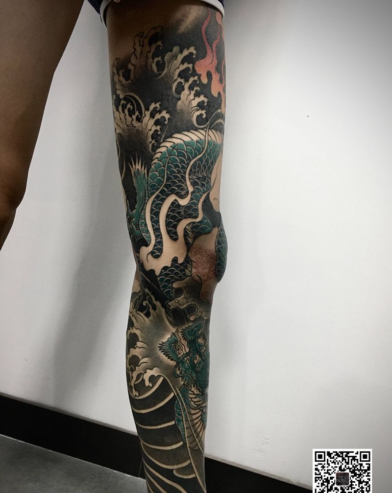 • T网红王老大花腿龙纹身图片_腿部新传统纹身图案