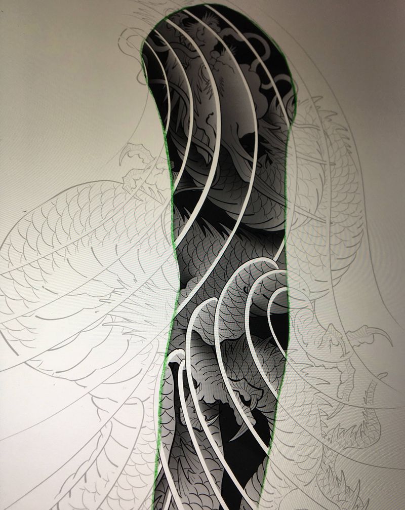 • T网红王老大花腿龙纹身图片_腿部新传统纹身图案