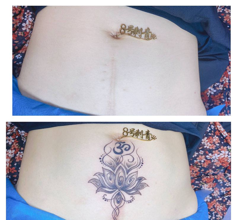 • 时尚性感的腹部莲花纹身图案