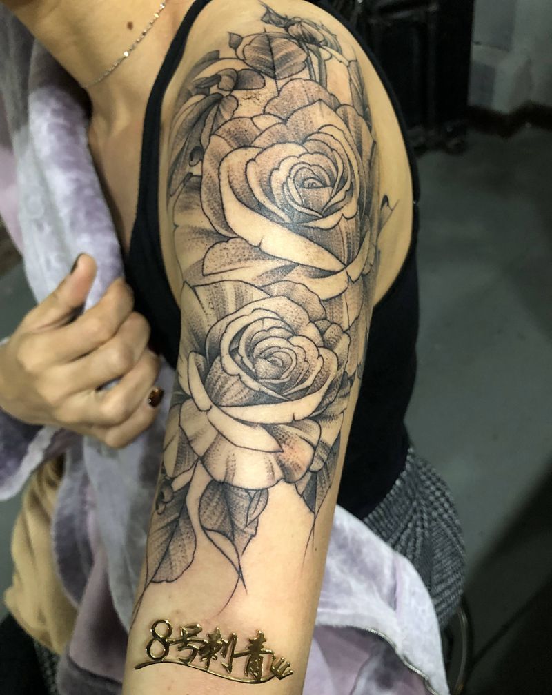 当前位置: 首页 >江苏省无锡市纹身店-8号刺青纹身图案>素花纹身图片_肩部手臂New School纹身图案
