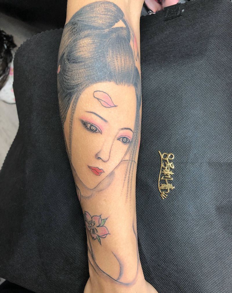 当前位置: 首页 >江苏省无锡市纹身店-8号刺青纹身图案>艺妓纹身图片_手臂新传统纹身图案