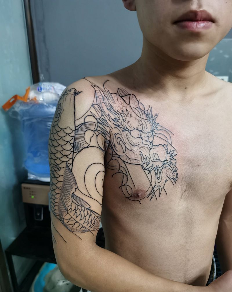当前位置: 首页 >江苏省徐州市纹身店-三合刺青纹身图案>半甲线条纹身图片_胸部老传统新传统纹身图案