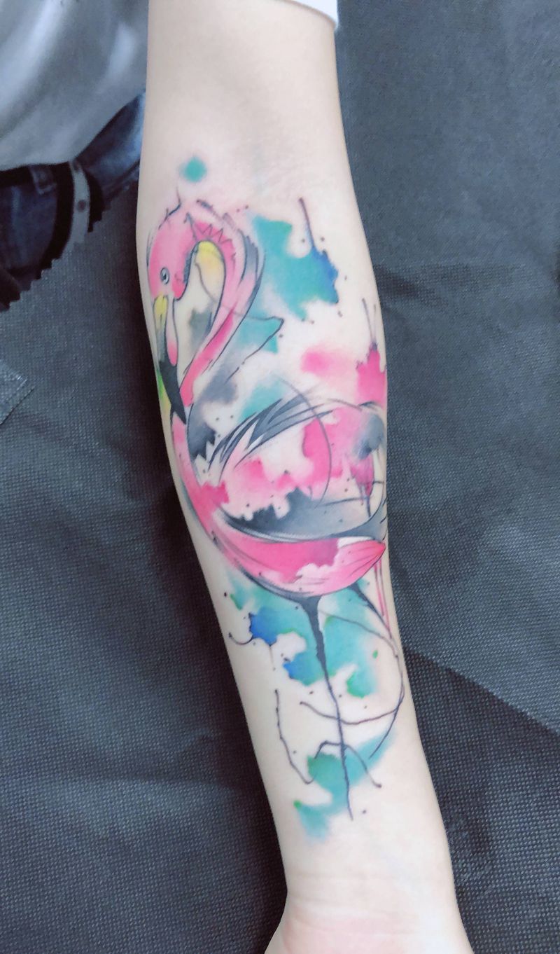 当前位置: 首页 >江苏省无锡市纹身店-8号刺青纹身图案>水彩风格火烈鸟纹身图片_手臂水彩火烈鸟纹身图案