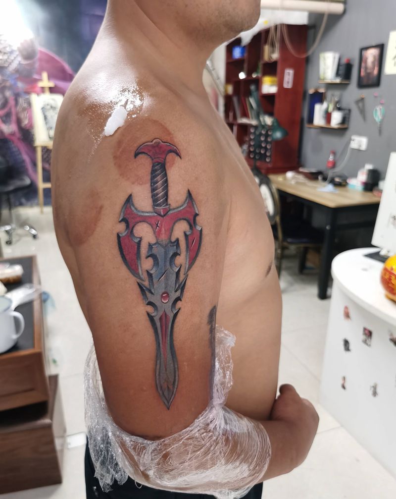 当前位置: 首页 >江苏省徐州市纹身店-三合刺青纹身图案>修改大宝剑纹身图片_手臂欧美写实纹身图案