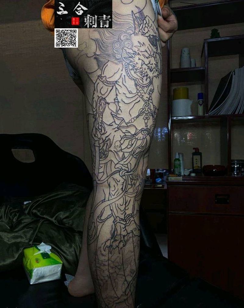 • T网红王老大花腿龙纹身图片_腿部新传统纹身图案