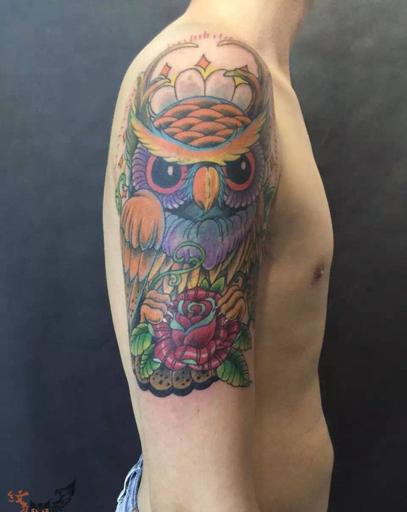 猫头鹰纹身图片_无锡.宜兴雨墨刺青常州手臂原创动物欧美传统纹身图案