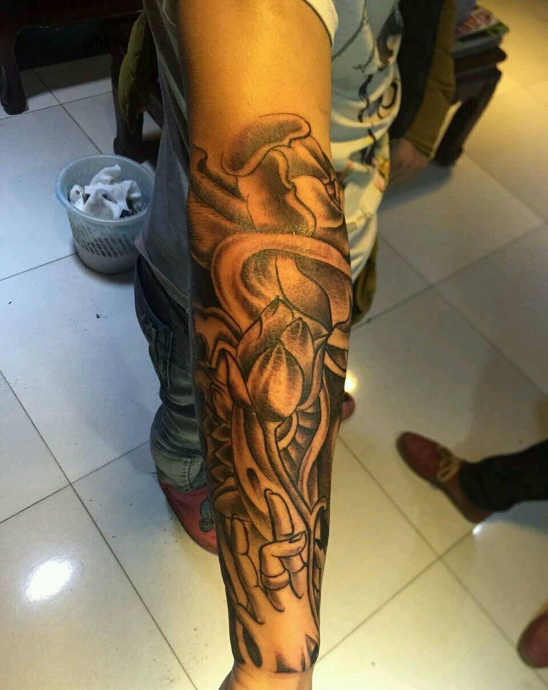 花小臂纹身图片_手臂传统人物原创成品纹身图案