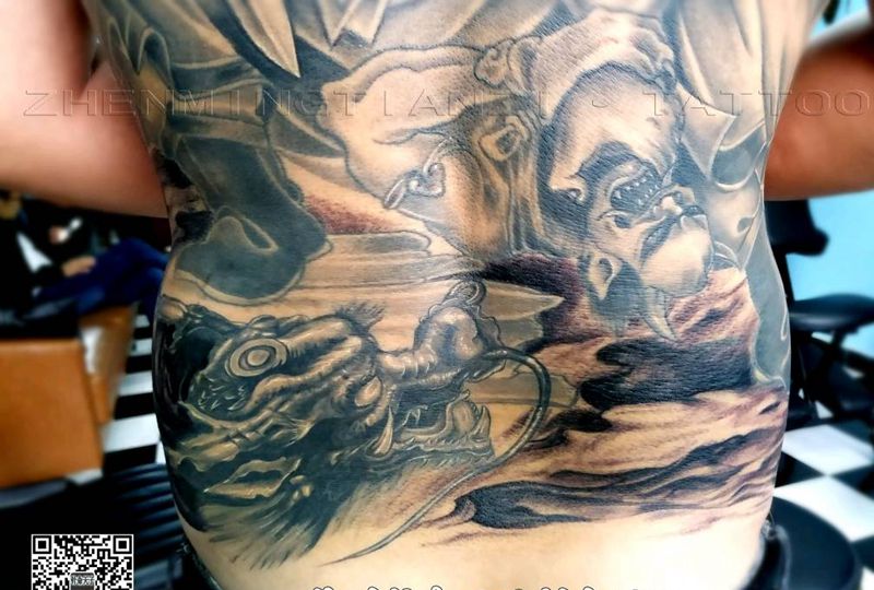 • T云龙九郎纹身图片_背部老传统云龙九郎纹身图案