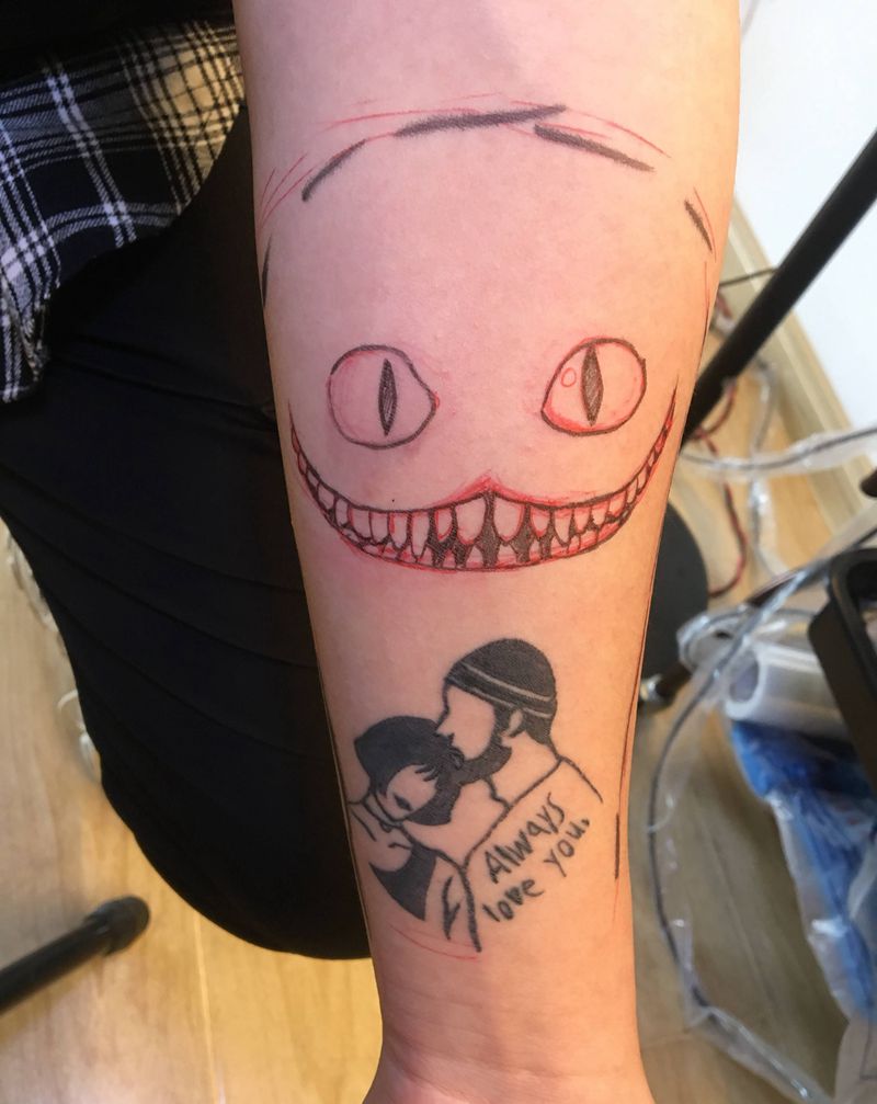 当前位置: 首页 >江苏省徐州市纹身店-徐州画文画武刺青工作室纹身图案>遮盖纹身图片_手臂欧美写实柴郡猫遮盖纹身图案