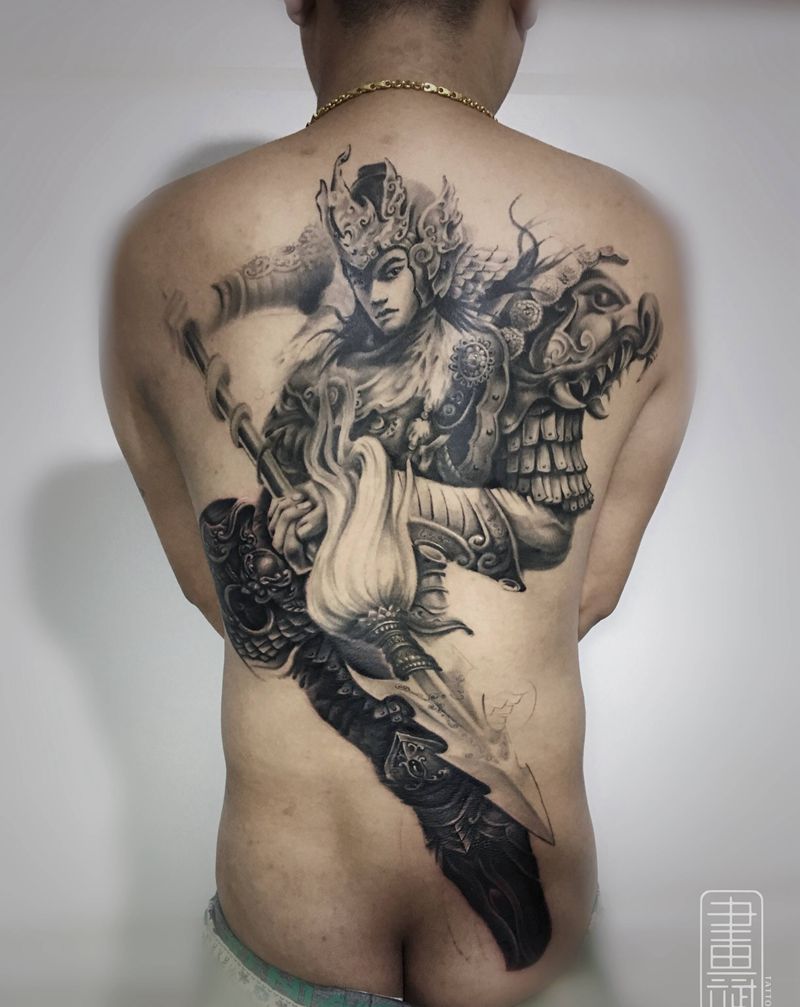 赵子龙纹身图片_背部欧美写实赵云赵子龙满背赵云纹身图案