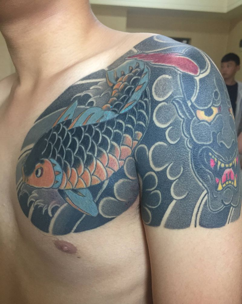 当前位置: 首页 >江苏省徐州市纹身店-徐州易青纹身纹身图案>半甲纹身图片_手臂老传统鱼 般若纹身图案