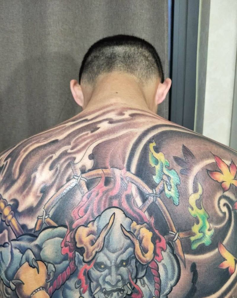 当前位置: 首页 >江苏省徐州市纹身店-徐州易青纹身纹身图案>彩色夜叉巡海纹身图片_传统背部成品鬼神纹身图案