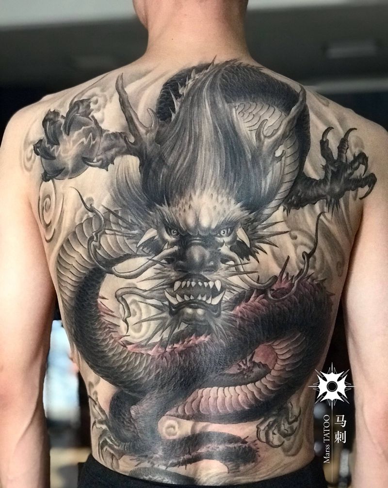 • T云龙九郎纹身图片_背部老传统云龙九郎纹身图案