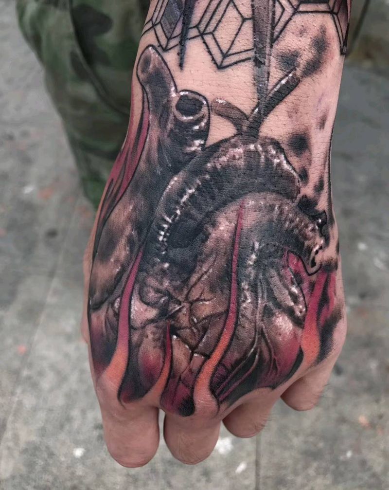 纹身师的花臂纹身图片_手部欧美写实纹身图案
