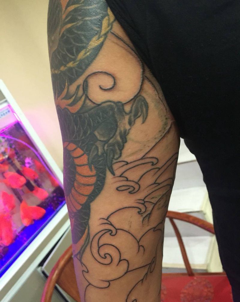 • T网红王老大花腿龙纹身图片_腿部新传统纹身图案