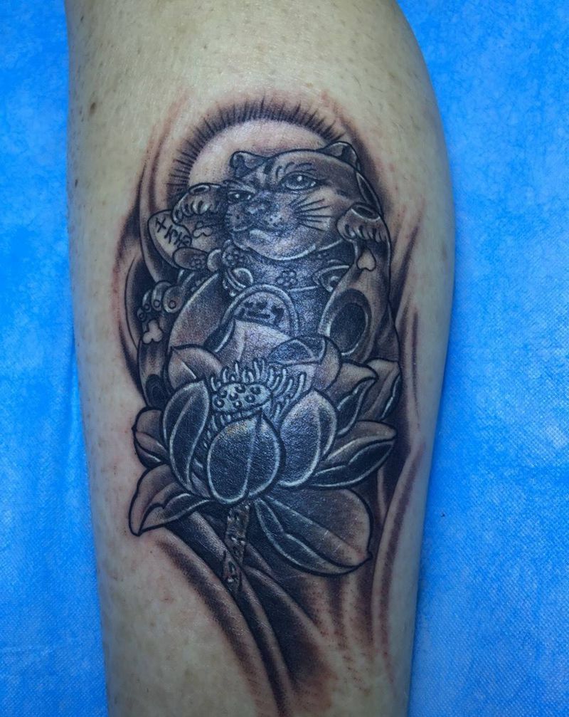 • T网红王老大花腿龙纹身图片_腿部新传统纹身图案