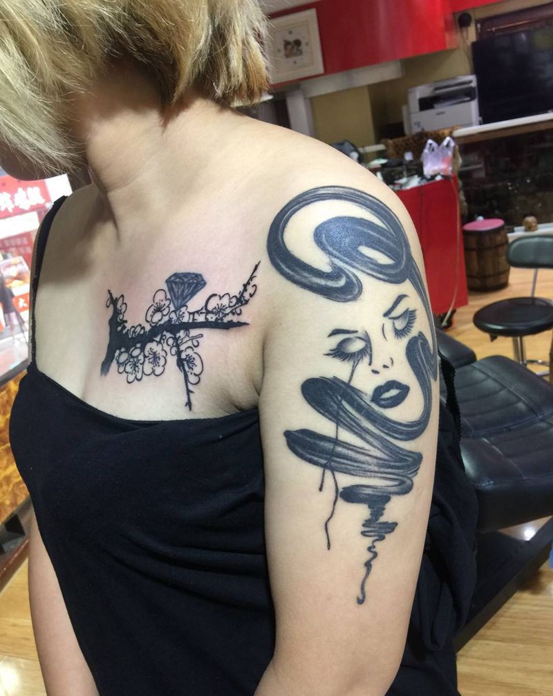 • 女性大花胸纹身_43张霸气漂亮的女性大花胸纹身图案作品