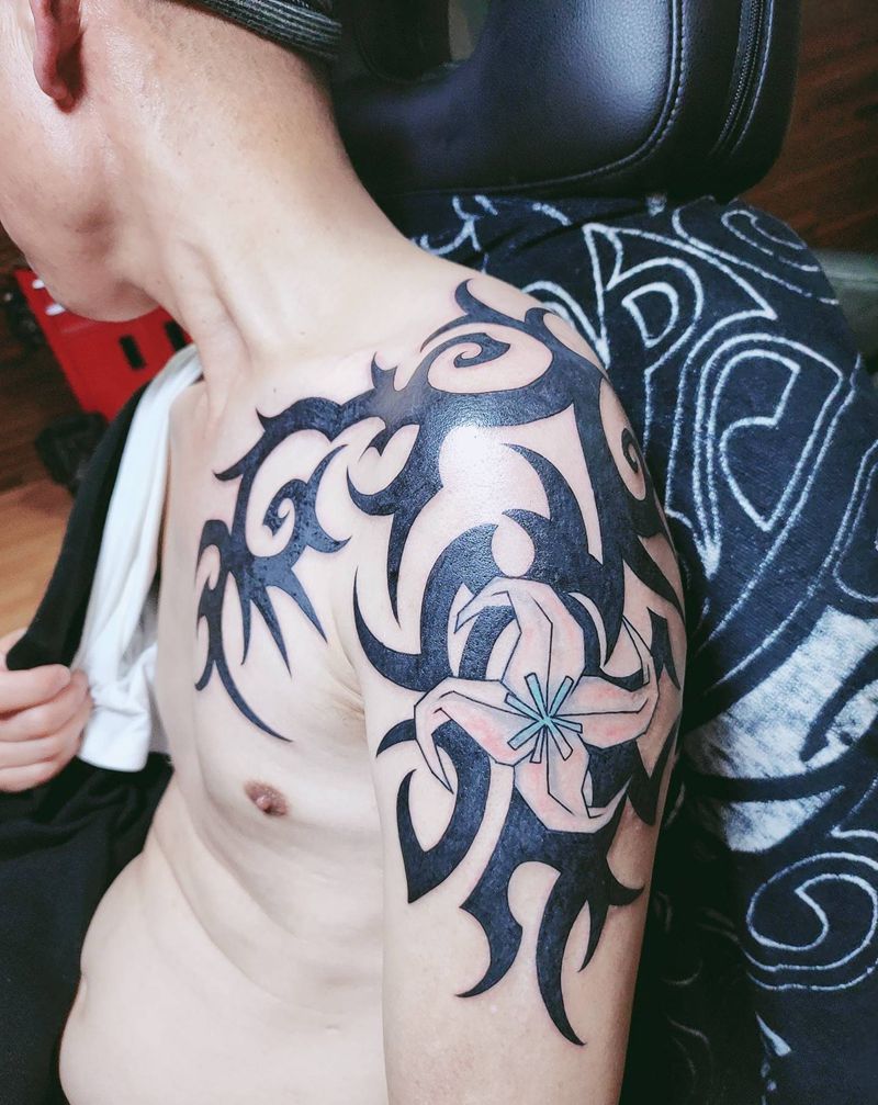 • 纹身吧推荐的披肩图腾半胛纹身图案作品展示