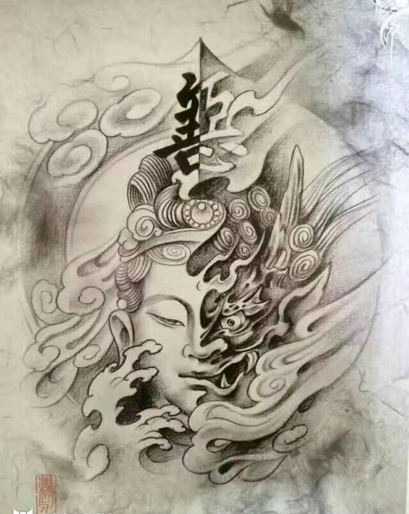 一组9张般若纹身手