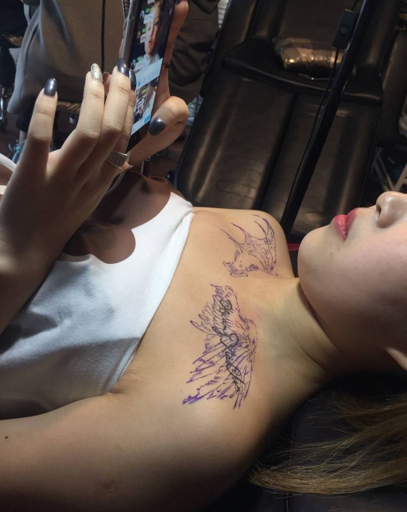 天使恶魔翅膀 旧图遮盖纹身图片_成品手稿胸部肩部欧美动物鬼神纹身图案