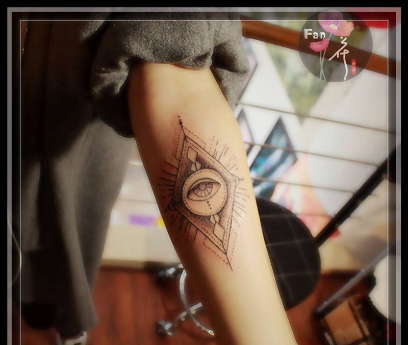 天使之眼纹身图片_手臂手部成品手稿几何纹身图案