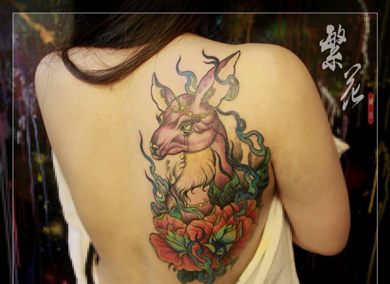 当前位置: 首页 >江苏省苏州市纹身店-苏州繁花艺术刺青纹身图案>麋鹿纹身图片_成品手稿肩部腰部背部欧美动物清新写实纹身图案