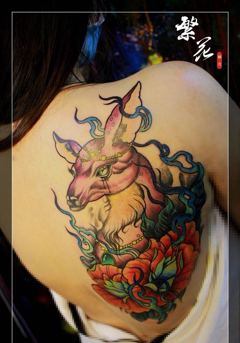 当前位置: 首页 >江苏省苏州市纹身店-苏州繁花艺术刺青纹身图案>麋鹿纹身图片_成品手稿肩部腰部背部欧美动物清新写实纹身图案