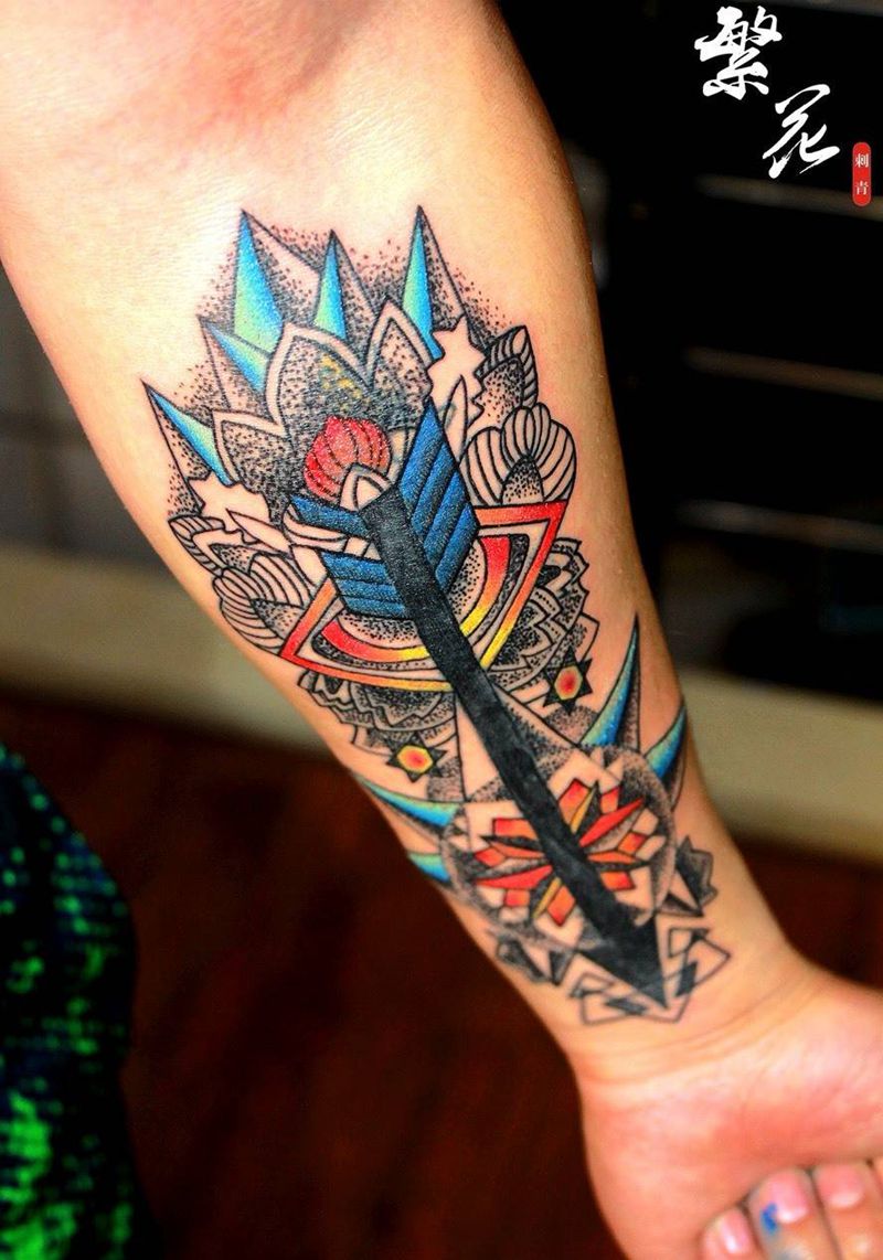 箭魂纹身图片_手稿成品手臂手部欧美几何图腾原创纹身图案