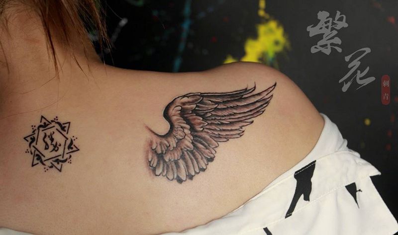 当前位置: 首页 >江苏省苏州市纹身店-苏州繁花艺术刺青纹身图案>翅膀纹身图片_成品手稿肩部传统写实欧美动物原创纹身图案