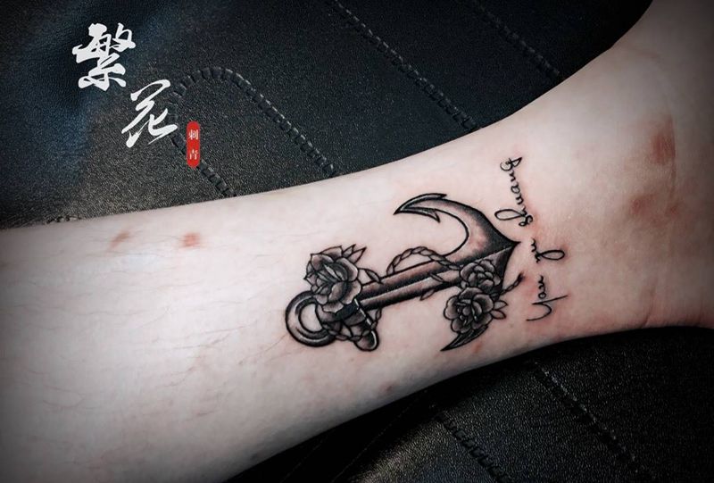 金刚杵太空船五条船锚英文小清新纹身图片_成品手稿清新手部腿部几何贴纸写实习俗欧美纹身图案
