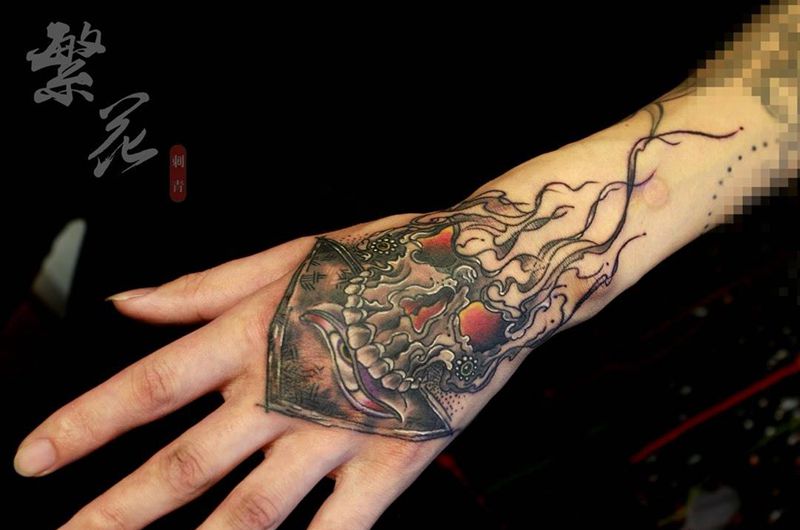 当前位置: 首页 >江苏省苏州市纹身店-苏州繁花艺术刺青纹身图案>骷髅手纹身图片_成品手稿手臂手部国画写实原创鬼神纹身图案