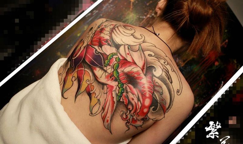 当前位置: 首页 >江苏省苏州市纹身店-苏州繁花艺术刺青纹身图案>锦鲤纹身图片_成品手稿背部传统写实动物贴纸原创纹身图案