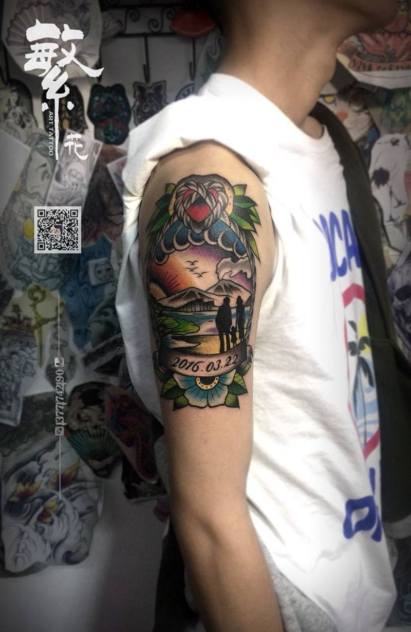 • T家庭图,一家四口生日纪念!纹身图片_手臂纹身图案