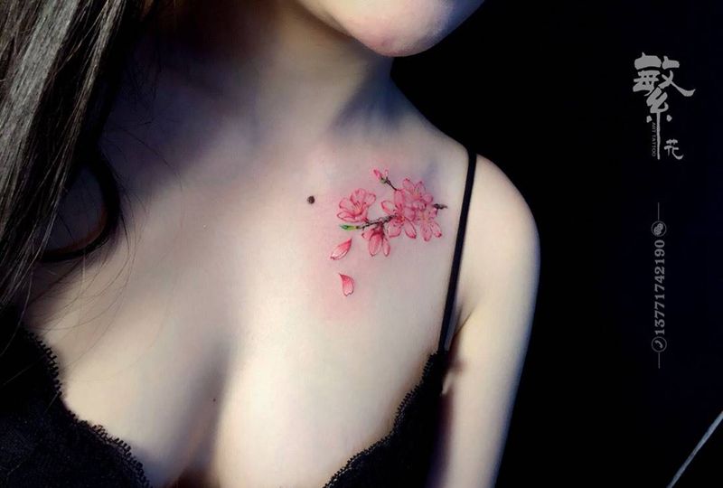 当前位置: 首页 >江苏省苏州市纹身店-苏州繁花艺术刺青纹身图案>樱花纹身图片_手稿成品胸部肩部写实清新植物静物锁骨纹身图案