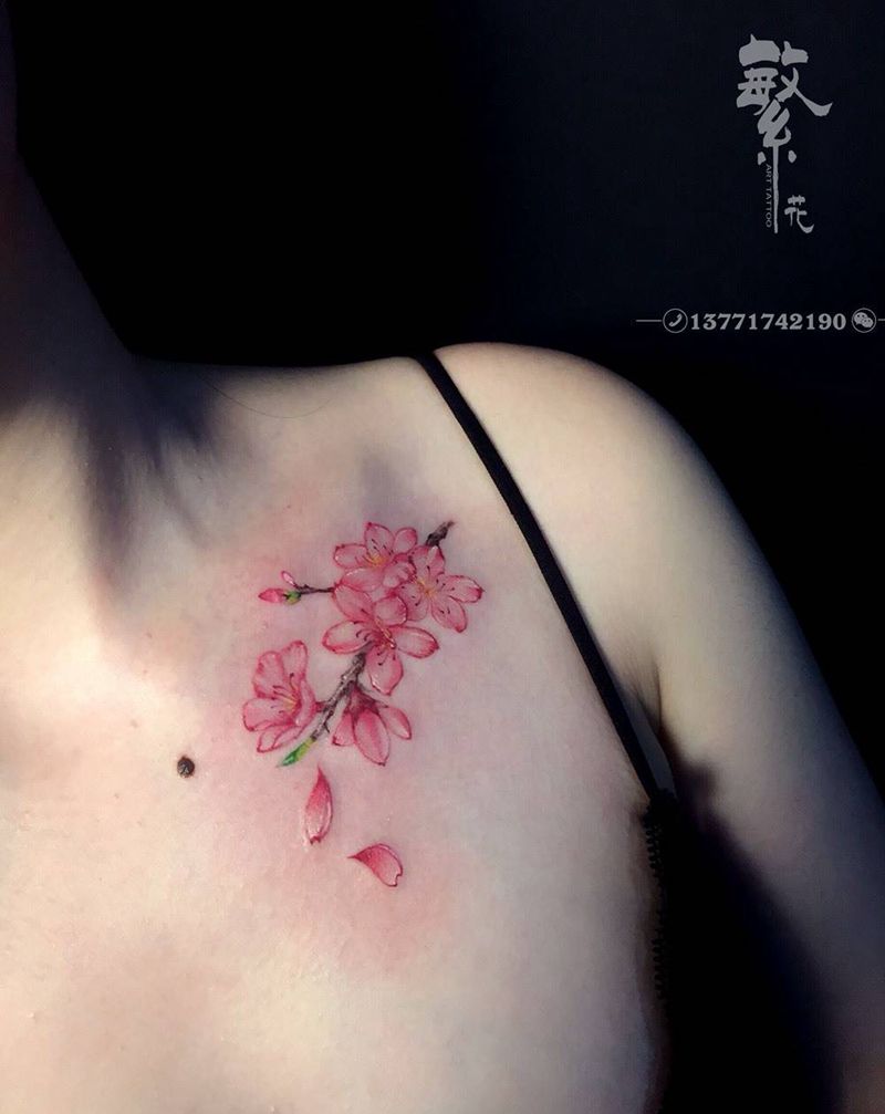 当前位置: 首页 >江苏省苏州市纹身店-苏州繁花艺术刺青纹身图案>樱花纹身图片_手稿成品胸部肩部写实清新植物静物锁骨纹身图案