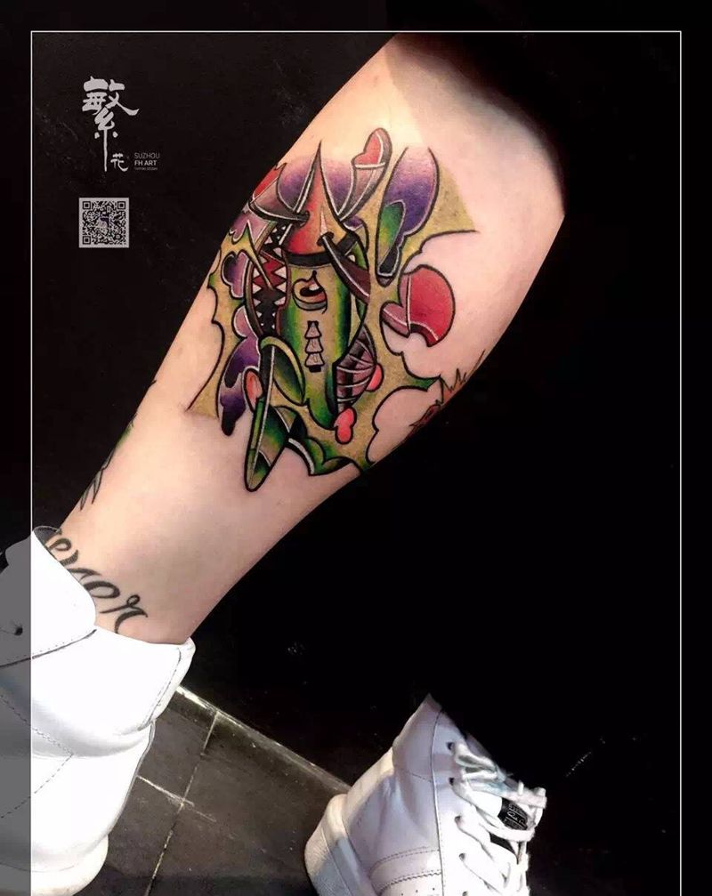 • T网红王老大花腿龙纹身图片_腿部新传统纹身图案