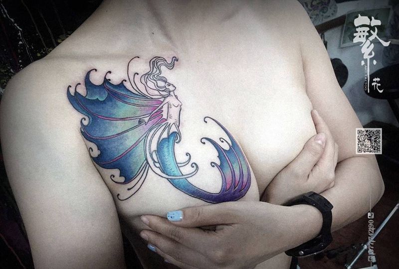 美人鱼 蝶纹身图片_手稿成品胸部欧美清新人物贴纸几何静物纹身图案