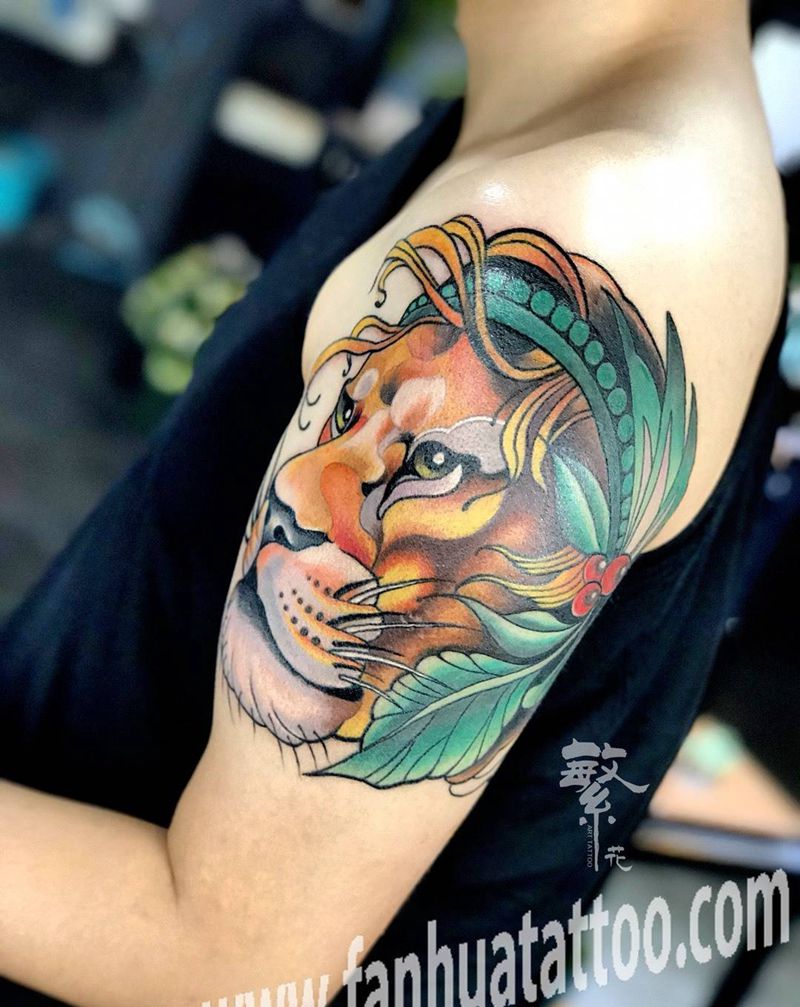 狮子 lion狮子座♌️纹身图片_成品手稿手臂肩部欧美动物狮子纹身图案