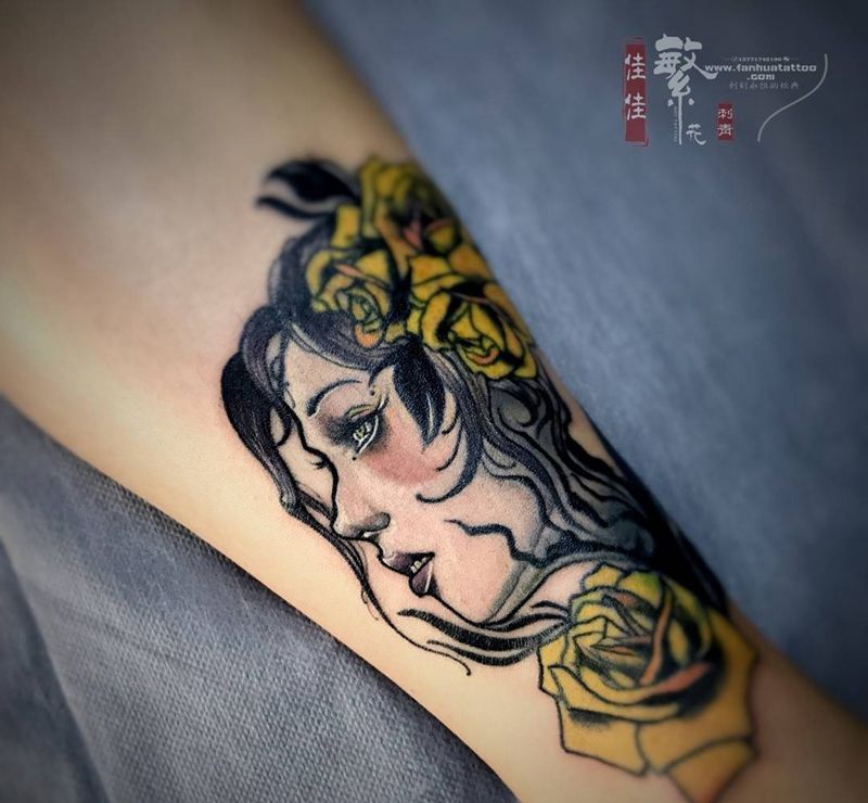 当前位置: 首页 >江苏省苏州市纹身店-苏州繁花艺术刺青纹身图案>欧美女郎纹身图片_成品手稿腿部欧美人物写实肖像原创纹身图案
